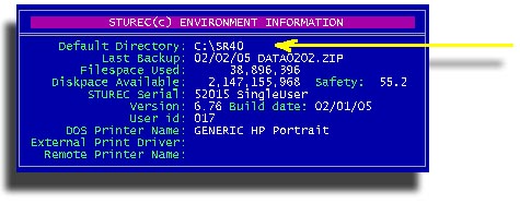 Make a note of the Default Directory then press <space> to close the pop-up. Close STUREC©.