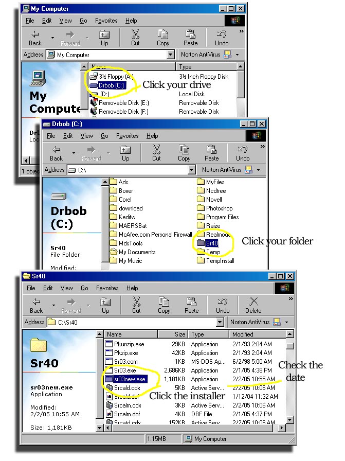 Installing updated versions of STUREC© Sr03 is really the same 2-step procedure as used to install software from any other website: