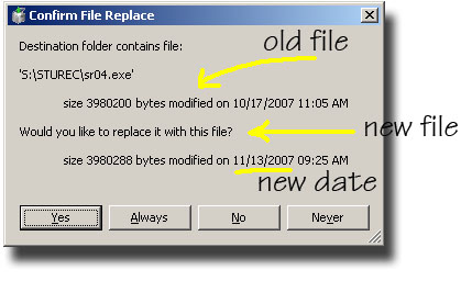 Click Ok and you are finished installing the update with the date shown on the Confirm File Replace dialog as above.