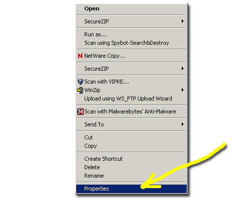 Select the last item, Properties from the pop-up menu and you should see this properties dialog.