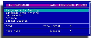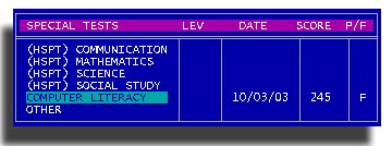 Again, these are not used for any official purpose, only for your local use. You may modify the name of any test on this panel by simply moving the highlighter then press Enter. You will be asked for an optional test level. Date and Pass or Fail are required. Score is optional.