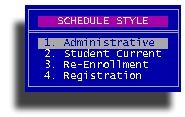 The 1.Administrative option makes particular sense when a student is registered in one or more lab classes. This new option will list the learning laboratory then indented a few spaces will be listed the Academic Components of the lab. The labs and their component classes are listed in course code sequence. For a student who does not have any labs on their schedule, you will see no difference.