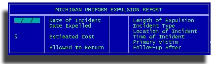 Now if your school board has "Expelled" your student, you must record this via the Michigan Uniform Expulsion Report which looks like this.
