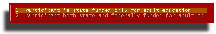 If you mark a student as Adult Education, you will be asked for a valid Participant funding code also. If your district has a Federal Grant, you should probably choose 2. funded for both, otherwise select 1. State only.