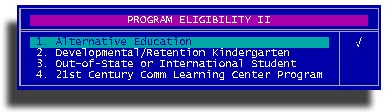 program eligibility II This was new at the end of 2002-03. Nothing applies to adults. If your student is in an Alternative Education program, check appropriately.