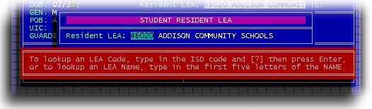 Resident LEA If you have coded your student with one of the non-resident codes (1..6) then you must enter the LEA number of the student's resident school district.