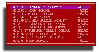If you have memorized the other district's number, just type it in, otherwise you may type the first five letters of the district name and STUREC(c) will show you a list of matching names. Pick the one you want.