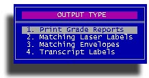 1. Print Grade Reports is the actual Report Cards (on paper). If you want to print matching Laser Labels or individual envelopes, these must be done immediately after printing the report cards. STUREC(c) will remember which students you just printed and print the labels or envelopes in the same order.