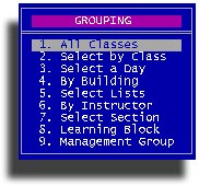 If you selected by Class sort in the Organization, you will be asked for your preferred grouping.