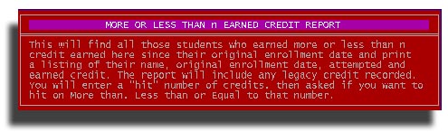 This will begin limiting the report to students who were active in either the enrollment period you specify or the current school year. You will specify the number of Credits to "Hit" on...