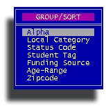 When finished making individual selections, press the Tab key to advance to the Group/Sort menu. STUREC(c) will stop and make a quick temporary "extraction" of the students who match the criteria you have selected so far. You will be asked if you want to save the "hit" file. If this is a combination you may use on a regular basis, you may want to say yes. On the other hand, your student population is probably somewhat dynamic, and the next time you want to run a report, some of the students may no longer meet the conditions you set, or you may have new students. We suggest you not save your hit file.