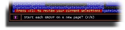 Note the message "Press <F1> to review you selections. You will see a display similar to this that shows the selections you have made so far.