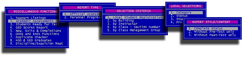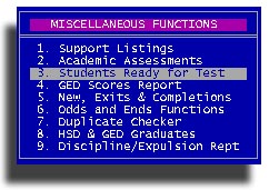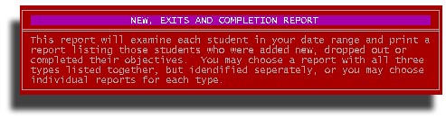 You are supposed to re-test ABE, ESL and GED students after each 90 hours of classroom attendance, so this will help you zero in on those students who are ready to be re-tested. Then you can decide the Style / Content of your report. Will it be Complete Status, only students without pre-test or students with a pre-test, but no post test. These will be handy at different times of the year. If you don't get any "hits", you may want to try again with less restrictive criteria. Remember that STUREC(c) does not automatically convert last year's post-test to a this year's pre-test. You will do that on a case-by-case basis, probably as students re-enroll for the new year.
