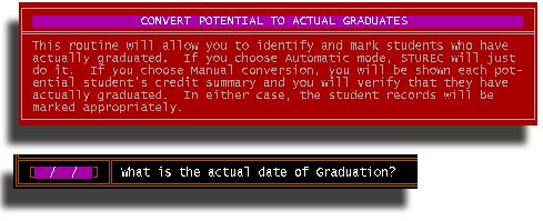 This defaults to three months before the beginning of the school year, but you may put in whatever date you want to use. This is for how far "back" STUREC(c) will look for a pre-test date. The second question asks
