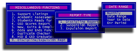 All three types of reports follow the same format. Choose the report type then the date range. There may be additional questions, answer accordingly. Remember the difference between "Suspension" and "Expulsion". An Expulsion requires school board action, is usually for at least 180 days and must be reported via the SRSD process in addition to any other reports you may have to file.